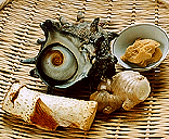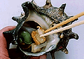 | 1.さざえの殻に身、肝、貝柱、うどを入れる。 |
