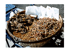 市場の入口を出たところで実演販売していたが、この時はちょっと遠慮してしまった。いずれもかなりデカイ。