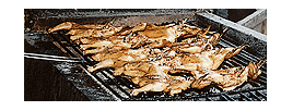鶏肉を甘い目のタレ(砂糖、にんにく、レモングラス、塩、こしょう、ナムプラーなど)に漬け込んで、炭火焼きにしたバーベキュー。