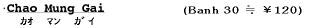 | ・麺料理 (各1杯 Banh 30≒\120 ) | |