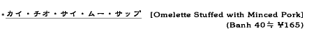 豚挽き肉と玉ねぎ、青ねぎを卵に混ぜ、ナムプラーとソップ・カオ・トーン(シーズニングソース)で味つけした丸いオムレツ。