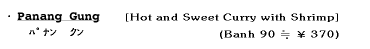 辛味の強い唐辛子やパクチー、カー、ピュー・マクルー、タクライ、カピ、玉ねぎ、にんにくなどでカレーペーストを作り、ココナッツミルクとえびを加えて軽く煮たカレー。砂糖が入っているので甘味を先に感じるが、かなり辛さが残る。