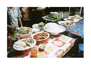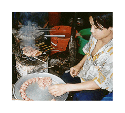 豚肉の赤身と脂身を粗切りにして甘く調味し、つくねのように丸める。これを串に3個ずつ刺して、炭火で焼いたもの。とても柔らかい。 食べ方は、ご飯(Com )にネムヌオンやチャーゾー、野菜の漬け物をのせ、甘い味つけのヌクマム(ヌクマムに砂糖と酢、それに少量の刻んだ唐辛子と水を混ぜたもの)をかける。右手にスプーン、左手にフォークを持つ。これで一人前Dong16,000-≒ \160-。