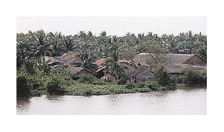 昼食後、ホーチミン市より南西へ60 km ほど離れたMy Tho 市までバイクタクシーを利用して訪れる。国道1号線(北はハノイ方面に続いている)を走ること約2時間。道路の大半は舗装されていないので、全身ホコリだらけになりながらミィトー市手前にあるちょっと変わった寺院に到着する。外観はとてもカラフルで、仏教寺院とカトリック教会の2つを合わせたものらしい。道路より向かって右側が男性用の寺院(ホーチミン市側)だそうで (タン・タット・ロンガン)、左側が女性用の寺院で ディエン・トー・ファット・マウ)と呼ぶらしい。  さらにバイクタクシーに5分ほど乗り、メコンデルタの入口に位置するハンボン市場に到着する。ここはホーチミン市の市場とはちょっと内容が変わり、鰹や貝類など新鮮な海産物が目立つ。一般的な肉類(豚、アヒル、鶏、鳩など)を含め、淡水産の魚貝類など種類も多い。また、蛙売りのオバサンがハサミで蛙の口先を切り皮を剥ぎ取っても、蛙がまだ飛び跳ねているのには驚いた。