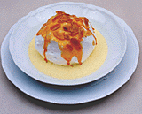 | 5.クレーム・アングレーズを皿に流して、火を通したメレンゲをのせ、焼いたスライスアーモンドを散らす。 |