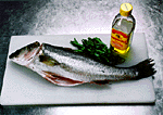 背と腹にエストラゴンをはさみ、オリーブ油をたっぷりかける(裏側にもよくまぶすこと)。しばらくマリネしておく。