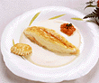 僕が研修に行ったころから料理場はもう息子のマルクにまかされていて、メニューもマルクの創作料理が中心になっていたけど、この鮭のスフレのようなお父さんのポールの料理は「オーベルジュ・ド・リルを有名にした料理」としてちゃんと残してありました。分量とか作り方とか、盛り付けまでほとんど変えないで出しているらしい。 |