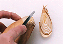 3. Make a shallow cut along the length of the bamboo shoot. |