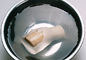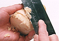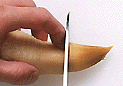 | 1.Cut off the tip of the bamboo shoot diagonally. |