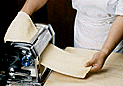 パスタマシンの目盛りを段々小さくしながら生地をのばしていく。