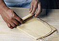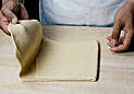 ある程度の長さにのびたら、生地を3つに折り、のばす方向を変える。これを繰り返しながら練る。
