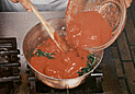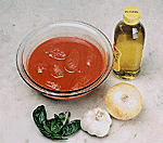 イタリア料理トマト・ソースSALSA DI POMODOROトマトの缶詰………………………800gにんにく……………………………1/2片玉ねぎ………………………………1/4個オリーブ油…………………………50ccバジリコ……………………………2枝 塩、こしょうー……………………各適量