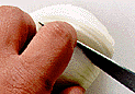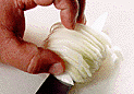 玉ねぎは皮をむいて縦半分に切り、根元を残したまま縦に細かく切り込みを入れる。