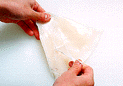 裏側は、指先で挟んでめくります。とれにくければ布巾でこするようにすると容易にとれます。