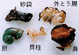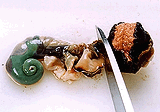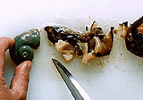 身と砂袋を切り離す。このとき、外とう膜を砂袋側にくっつけて切り離すとよい。