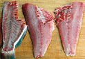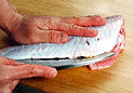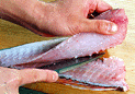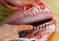同様に腹骨と中骨の接点の部分をはずし腹側に包丁をすすめ卸します。