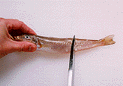 頭のほうを左側にして腹を開けます。