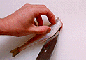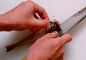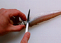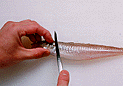 頭を左側にして尾から頭にむかって鱗を取ります。
