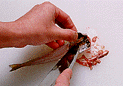 内臓を刃元を使って取り出します。