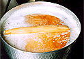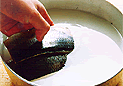 8. 火からおろし、落し蓋の上から少しずつ水を注いで約30分さらす。 |