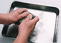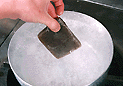 塩のついたまま熱湯に落とし5,6分間ゆがく。