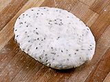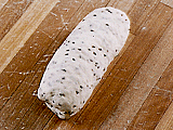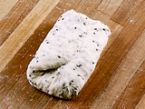 .閉じめを上にして、奥から3分の1おり、180度生地を回転させ同様に折る。
