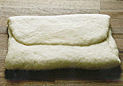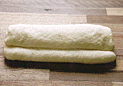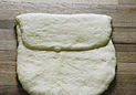 180度反転させ、奥から半分まで折り返し中央で少し重ねて押さえる。