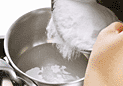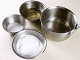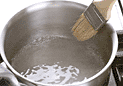.途中鍋の周囲に飛び散ったシロップが焦げないように水で濡らしたハケでときどき洗い落とす。