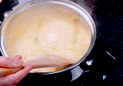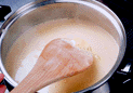 鍋の底から火が入り固まってくる。これをしっかりはがしながら焦がさないように炊く。