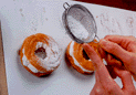 粉砂糖やココアパウダーを飾り用としてふる場合、茶こしを使うとムラなくきれいにかかる。