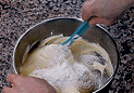 マーブル状まで混ざれば粉をふり入れさらに切り