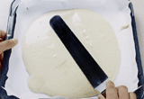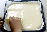 パレットナイフかコルヌの平らな面を使用して均一な厚みにする。