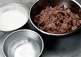 沸騰すれば生餡を2/3量加え混ぜ合わせる。