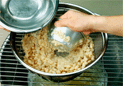 .手でさわれる温度に冷めれば、水をかけながら小豆の中身をこす。