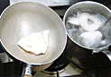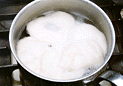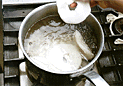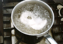 穴をあけ、表面積を広くすると早くゆで上がります。