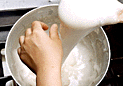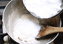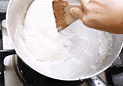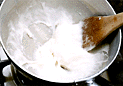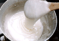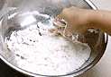 一度に全部を加えるとなじむのに時間がかかり、水分が蒸発して生地が固くなります。