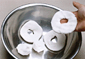 生地を分けて手で平たく伸ばし中心に穴をあける。