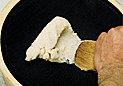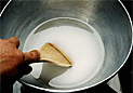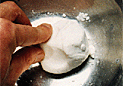 さらにしっかり練り上げ、手の甲に餡がついてこなければ良い、これを「火取り餡」と言う。 |