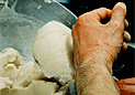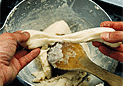 練り上がりの目安は、引っ張ると生地が延びる状態。 |