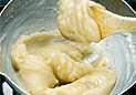 餡に十分に火を通しておかないと、仕上がりの口当たりが悪く、つやも出ません。 |