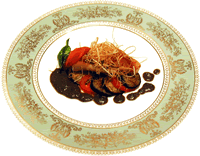 カサゴをにんにく、タイム、オリーブ油でマリネしてからフライパンで 焼きオリーブがベースのタプナードとバターベースのブール・フォンデュで作ったソースをかける。ズッキーニ、なす、トマトのオーブン焼きとポロねぎのフライを添える