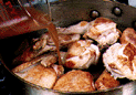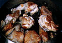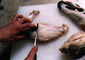 鶏………………………………2羽バター…………………………20gサラダ油………………………適量エシャロット(みじん切り)………………2個シャンピニョン(薄切り)…………………1パックブランデー……………………20cc白ワイン………………………40ccフォン・ド・ヴォ……………400cc塩、こしょう*フィーヌゼルブエストラゴン(みじん切り)………………2枝セルフィーユ(みじん切り)………………2枝パセリ(みじん切り)………………適量つけ合わせじゃがいも……………………3個サラダ油………………………適量バター…………………………10g