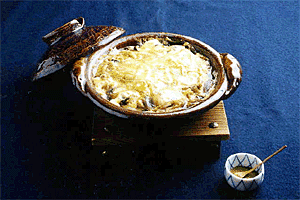 どじょうと言えばこの料理。暑い夏に体力をつけたいとき、初夏からおいしくなるごぼうを取り合わせた料理です。香りの強いごぼうを合わせるのは、どじょうのくせを消すためです。本来はどじょうをそのまま使いますが、今回は骨を抜き、食べやすくしました。ふわっとしたどじょうの身と、ごぼうの歯ごたえを楽しめる料理です。