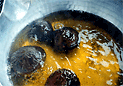 戻した干し椎茸は、約15分間ゆで、柔らかくします。吸地八方で煮込み、下味をつけます。