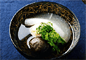 温めた蕪をかぶせ、吸地をはります。蕪を通してぼんやりと中の具がみえます。