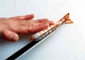 は、のし串を打って塩ゆでします。冷めた後、頭をとり除きます。