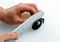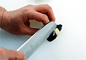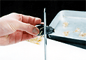 . 軽く押さえて、切りこみを開きます。