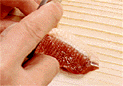 4.この様な状態になります。5.左端より5mm厚でそぎ切りにします。6.包丁を引いてきて一気に切るようにします。
