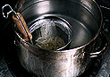 8. Strain the stock slowly. If