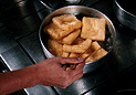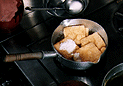 the fried tofu and prepares it for flavouring. Drain and wrap in muslin